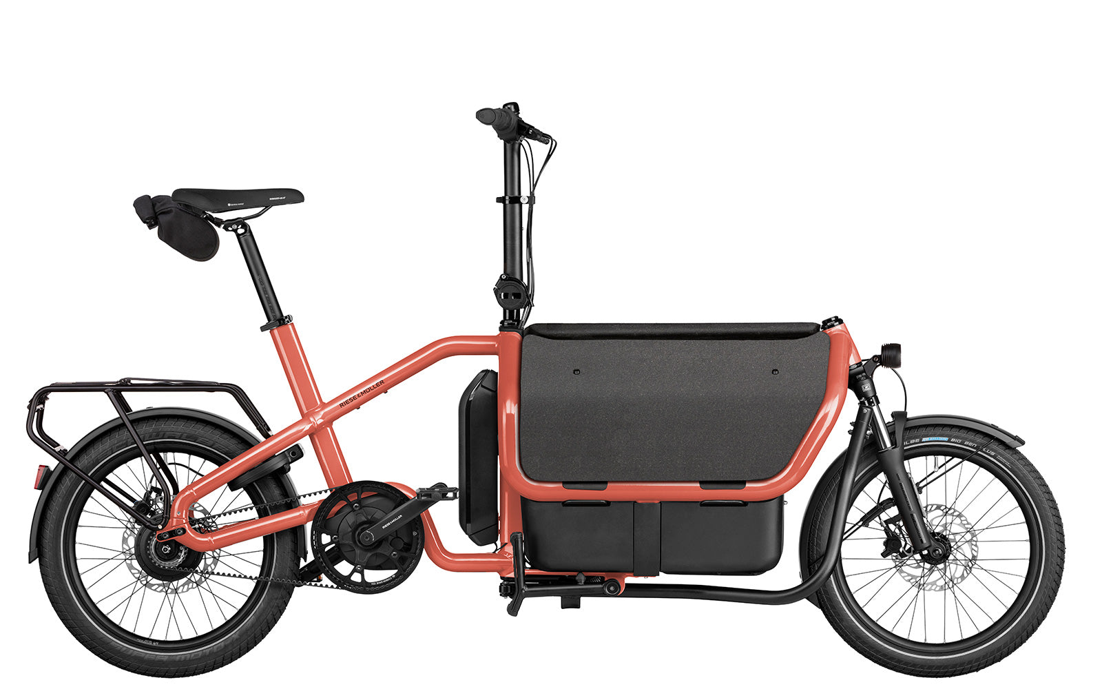 The Carrie2 by Riese and Muller takes sustainable everyday urban mobility to a new level: this compact cargo bike offers the largest possible loading surface in as small a space as possible. Forget heavy bags or rucksacks – choose from a wealth of transport accessories to suit your needs.